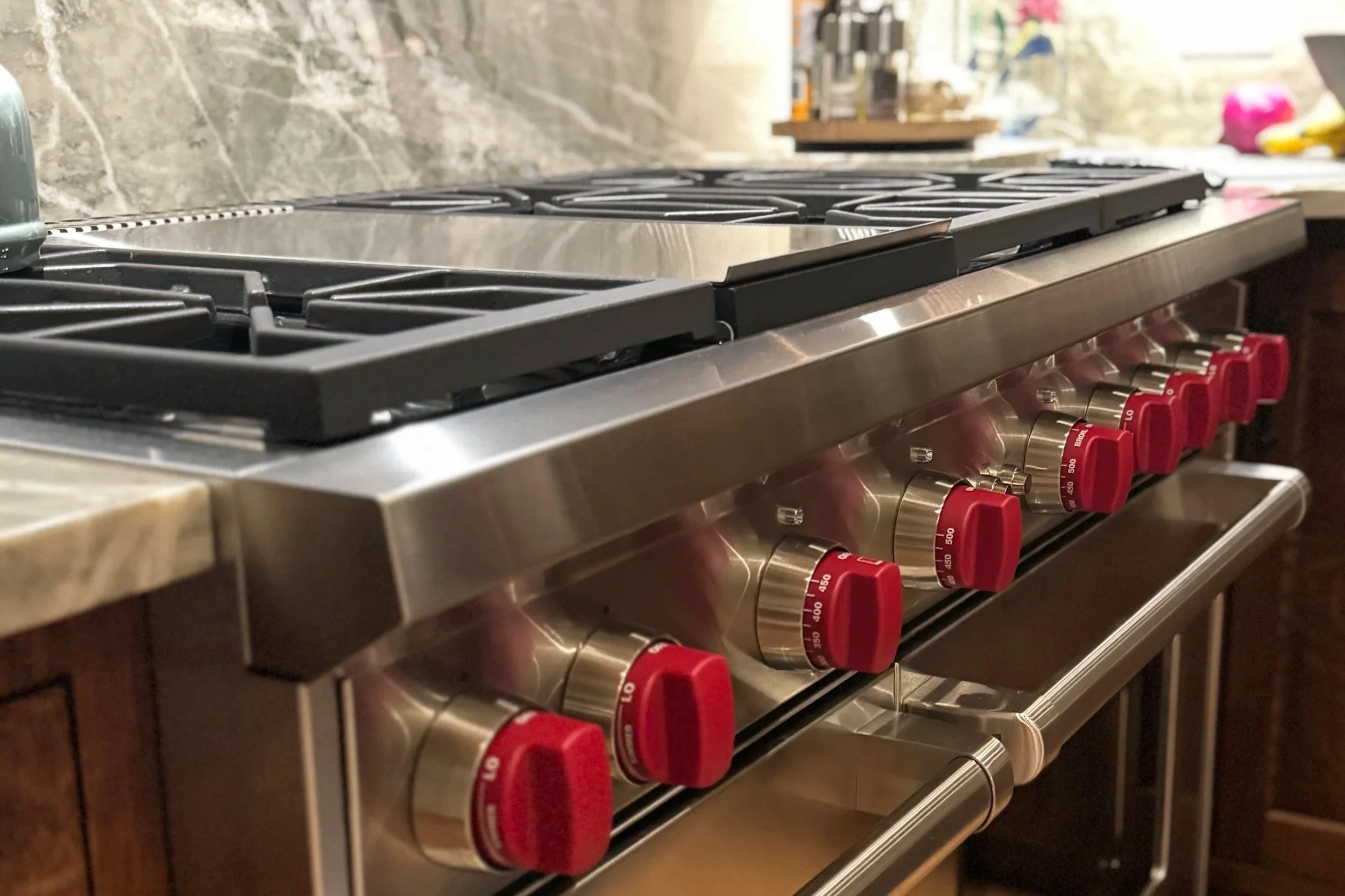 We designed a kitchen where the overhead lighting is minimal and warm. 2700K. We added focused task lighting over the sink and stove. The cabinetry is a soft, sophisticated color that was inspired by a paint chip she'd saved from a trip to Florida. The hardware is unlacquered brass that will warm over time. When she cooks in that space at night, it doesn't feel clinical. It feels home.